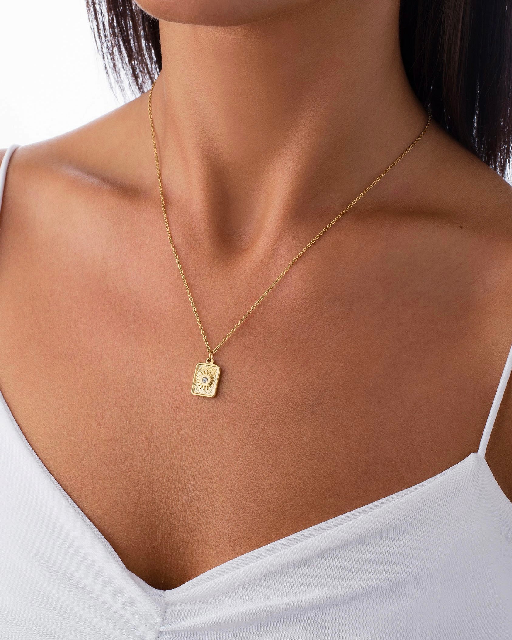 Necklace with sun and crystal