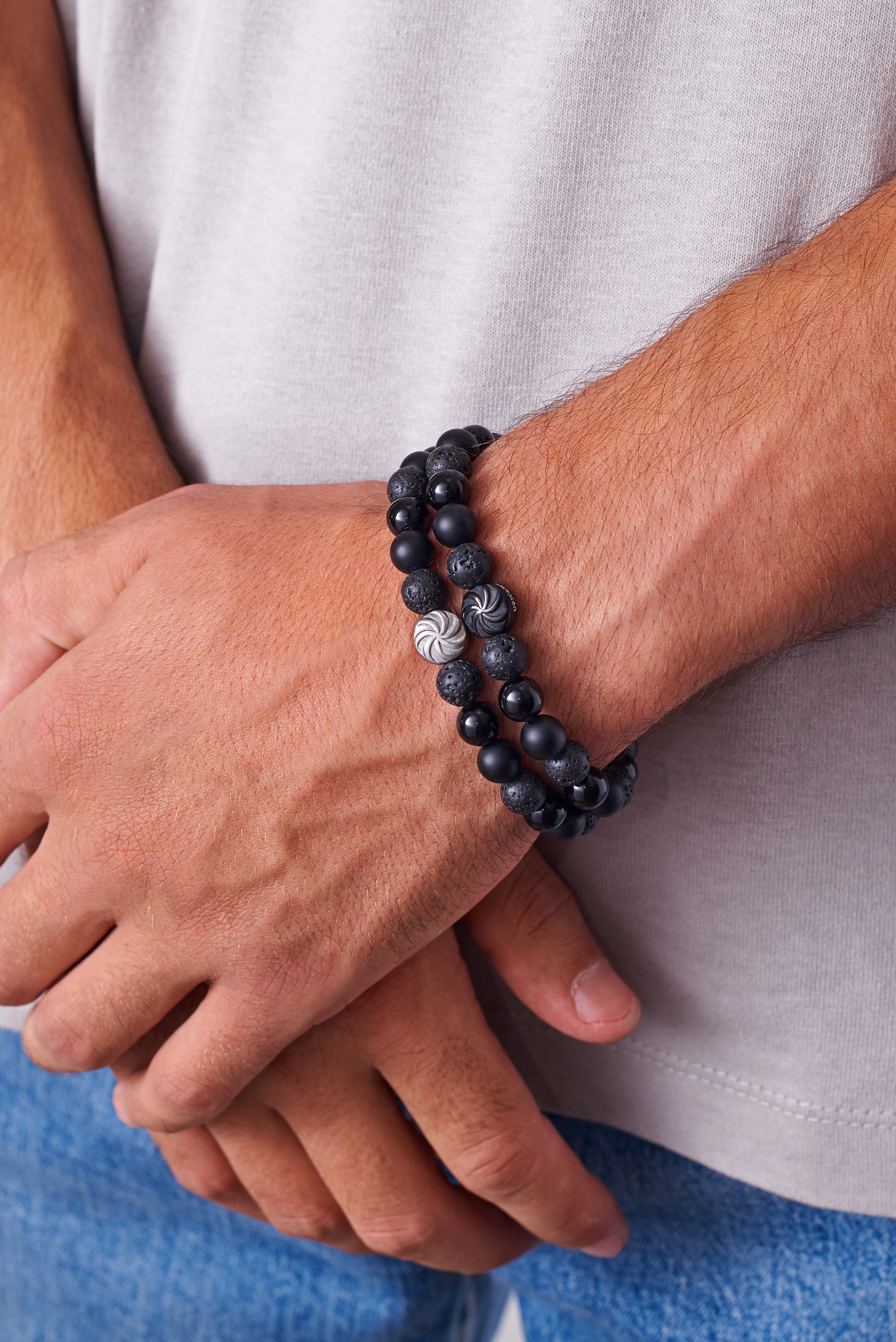 Natural stone: 8 mm black tourmaline, black agate, lava stone